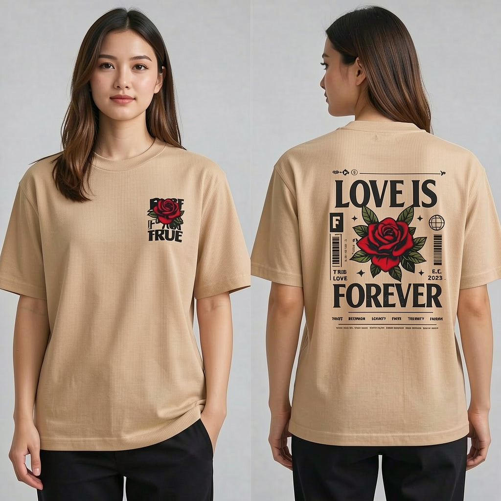 Say it with roses and wear it with love πΉ. This oversized tee is inspired by Valentine Weekβs Rose Day, symbolizing timeless romance and heartfelt emotions. The bold rose graphic paired with βLove Is Foreverβ brings a perfect mix of softness and statement, while the relaxed fit keeps it comfy and stylish. Ideal for dates, gifting, or simply spreading love vibesβbecause some feelings never fade β€οΈβ¨
