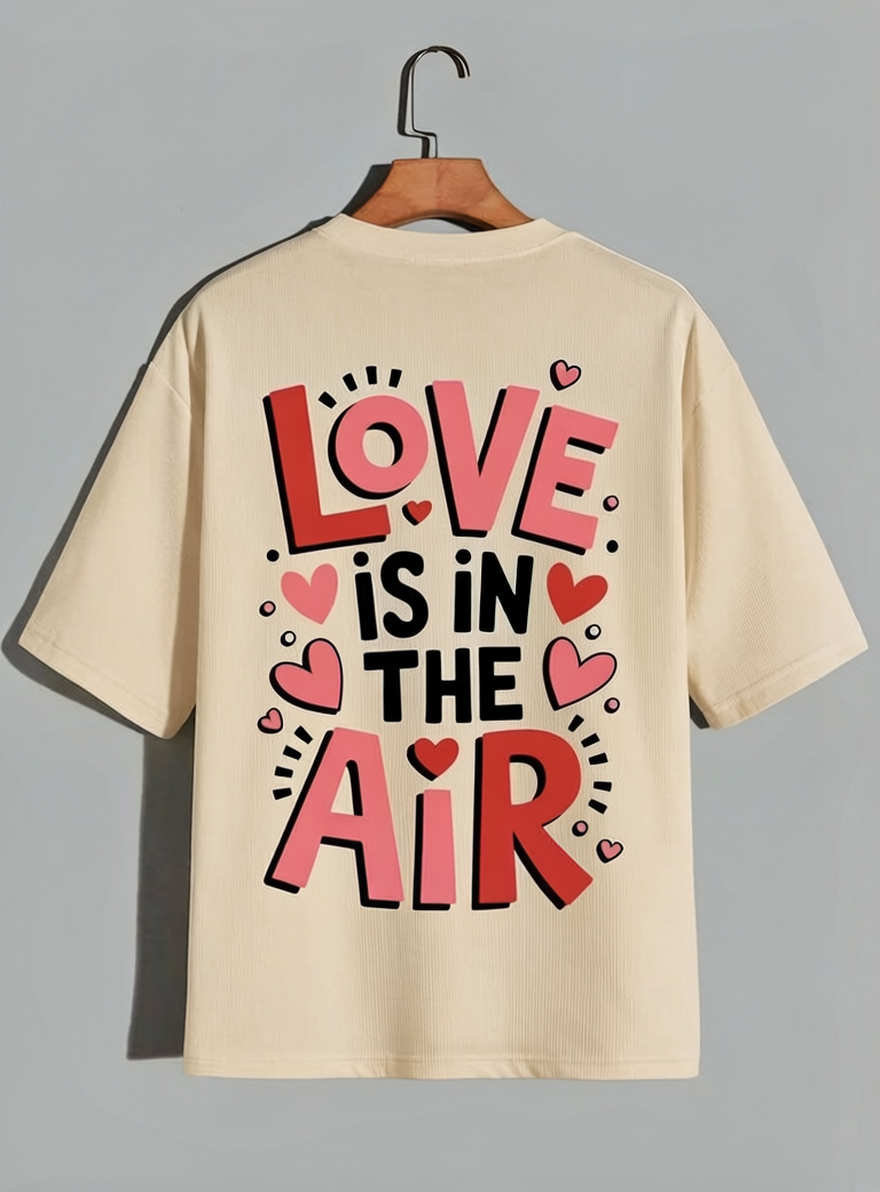 Spread the sweetest vibes wherever you go 💕 This oversized tee features a bold “Love Is In The Air” typography design surrounded by playful hearts in soft pink and red tones. The relaxed fit gives you that effortless, comfy street-style look while the cheerful design adds instant romantic energy. Perfect for Valentine’s week, cute date fits, or just when you’re feeling extra lovable 💗✨